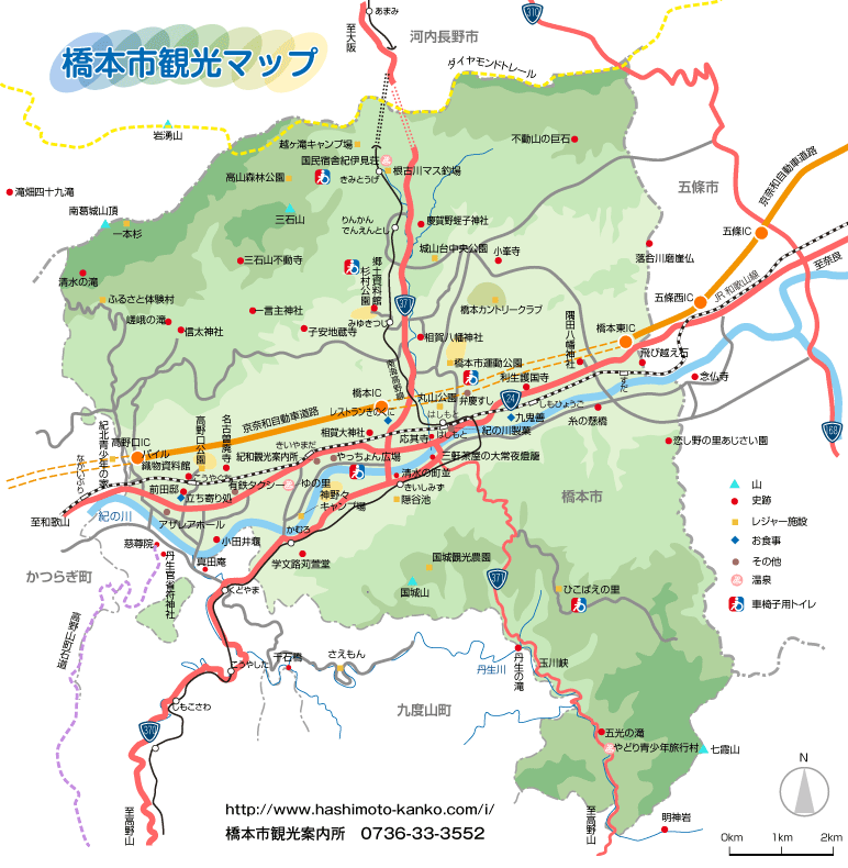 橋本市内の観光スポットをまとめた観光マップです。プリントアウトしてご利用いただけます。 プリントには高解像度のPDFが最適です。またPDF版には携帯用サイトへのQRコードも含まれていて便利です。 →PDF橋本市観光マップ