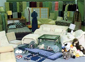 しかしながら、手織機による手工業的製織技術に頼り機械化の研究が行なわれなかったため、昭和35年頃を境に姿を消すこととなりましたが、昭和58年、紀州繊維工業協同組合の振興対策事業の一環として先端技術を導入し再織製織技術の近代化に取り組み昭和61年パイル織物開発センターを建設し、以来今日まで苦心研究を重ねて、ようやくコットンの暖か味のあるモダンでフレッシュな再織が新しく誕生し、これを機にファッション、寝装、インテリア用商品への展開が進められています。