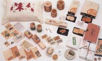 木製テレホンカード、杉丸太フラワーポット、杉丸ペン立、杉丸太オルゴールBOX、木の国紀州の森林浴(缶詰)、森林浴枕、木製葉書、解木目木郵便、木の名刺、檜の湯、みかんの湯